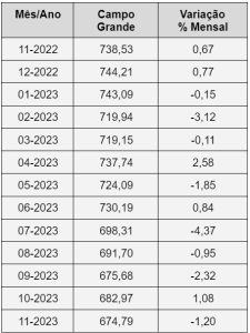 PREÇO DA CESTA BÁSICA EM CAMPO GRANDE EM NOVEMBRO DE 2023