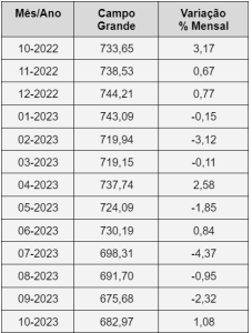 PREÇO DA CESTA BÁSICA EM CAMPO GRANDE EM OUTUBRO DE 2023